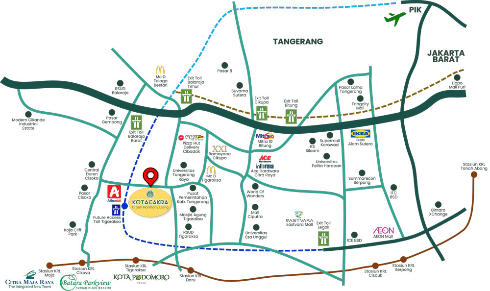 Dekat dengan pendidikan, komersial, industri, dan Pusat Pemerintahan Kabupaten Tangerang, Kota Cakra dianggap sebagai 'The Next Serpong' dengan akses mudah ke Tol Serpong - Balaraja.